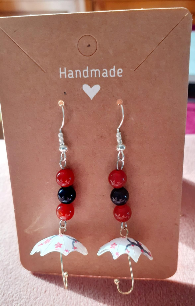 Boucles d'oreilles parapluies 🌂 avec cornaline et obsidienne